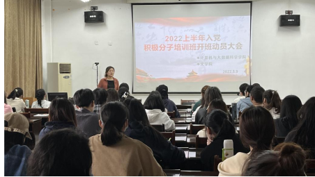 在动员大会上,计算机公司周老师阐述了入党积极分子培训班的意义,并对各位入党积极分子提出相应的纪律要求,希望各位入党积极分子在为期两周的培训过程中积极参加安排的各项学习活动,不断端正入党动机,增强入党决心。
