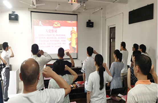 随后,由各支部副书记领誓,支部党员一起重温入党誓词。一句句铿锵有力的誓言,一声声掷地有声的承诺。既是对入党初心的回顾和洗礼,也是对使命但当的承诺和信心。