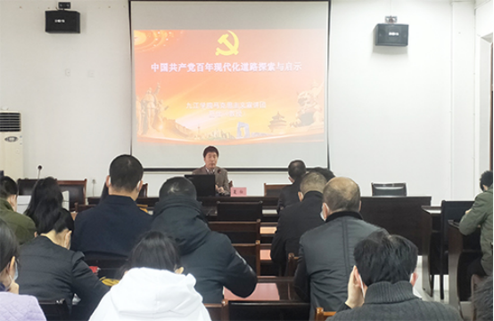 报告会上,夏仕教授以《中国共产党百年现代化道路探索与启示》为题,从中国共产党百年奋斗史的主线、中国道路的百年探索、中国道路的百年探索的现实启示三个方面,用大量生动详实的历史案例,深刻阐明了中国共产党1921年成立的开天辟地、新中国成立的改天换地、改革开放的翻天覆地、新时代的惊天动地的百年奋斗史。深入阐述了中国共产党的领导是历史的选择和人民的选择,诠释了没有共产党就没有新中国的历史必然。