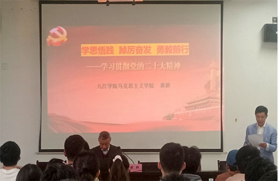 为进一步推动学习贯彻党的二十大精神走深走实,4月12日下午,bevictor伟德在文友楼424召开学习贯彻党的二十大精神专题辅导报告会。校马克思主义公司黄群教授作专题辅导报告,计算机公司党委书记袁宜如同志主持。