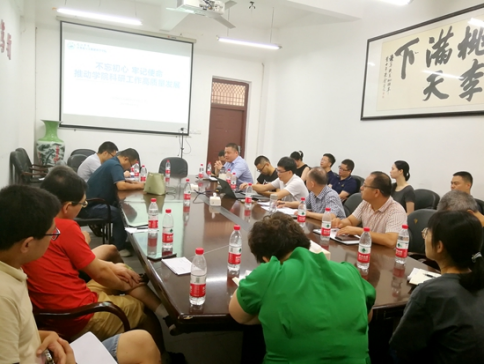 座谈会伊始,彭虎首先作了“不忘初心,牢记使命,推动公司科研工作高质量发展。”为主题的报告,他从ESI学科分析、“互联网+”大赛、社会服务、科研成果奖等四个方面进行了分析和阐述,并强调公司高质量发展,需要发挥教授和博士人才的带动作用,依托高层次人才实力,打造高水平学术团队,推动公司科研工作高质量开展。