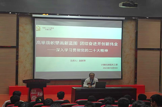 为持续深入学习宣传贯彻党的二十大精神,让党的二十大精神在广大师生心中落地生根,10月9日晚,计算机公司关工委在香远楼报告厅面向计算机公司2023级新生开展深入学习贯彻党的二十大精神宣讲,邀请校关工委“五老”报告团成员赵新萍教授主讲。