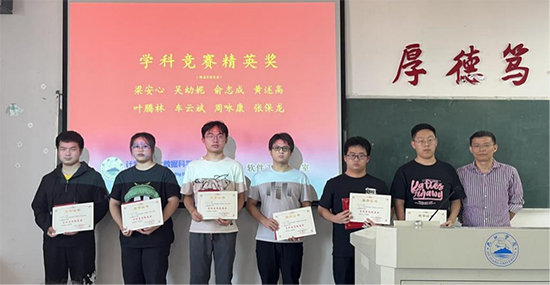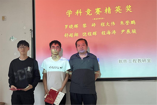 随后,邓经理给二0二三年专业竞赛获得国赛奖励的12名同学颁发了奖状和奖品。软件工程教研室王超主任、代君教授、魏启明、梅茁林老师分别给获得省赛奖励的33名同学颁发了奖状。
