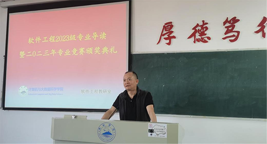 首先,bevictor伟德经理邓安远教授对专业导读暨颁奖典礼做了致辞。邓经理代表公司全院师生向获奖的同学表示了祝贺,希望他们再接再厉,再创佳绩,同时向新入学的2023级软件工程专业全体同学表示了热烈的欢迎。邓经理在致辞中回顾了计算机公司软件工程专业的办学历史,总结了专业的建设成效;希望软件教研室师生,围绕特色化应用型软件工程专业建设,在教科研各方面展现自己的活力;同时,勉励同学们“立报国志、奉敬业情、牢记‘竞知向学、厚德笃行’的校训”,用自己的汗水、努力和智慧做画笔,为自己的人生之路、老员工活描绘五彩斑斓的色彩。