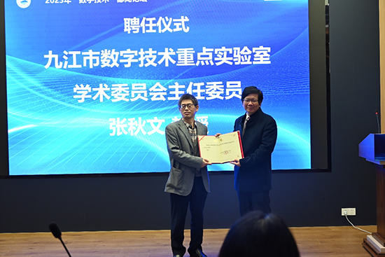 在论坛报告会前,九江市数字技术重点实验室聘请华中科技大学张秋文教授为九江市数字技术重点实验室学术委员会主任委员,并现场举行了聘任仪式。