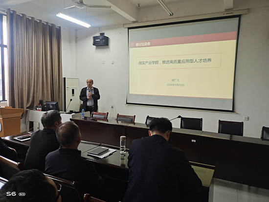 胡广义以“做实产业公司,推进高质量应用型人才培养”为主题,结合其前往广东东莞理工公司考察学习和学习江苏常州工公司董事长张兵来校所做专题报告思考,重点以东莞理工公司和常州工公司两所高校的现代产业公司建设为案例进行讲解,详细介绍了这两所高校现代产业公司的建设理念、建设模式、目标定位、平台共建、政策保障等方面的内容,并分享了成功案例“中兴通讯NC公司”、“粤港机器人公司”、“西门子职能制造公司”等产业公司的建设背景、组织运行机制、人才培养体系、项目化课程、实训平台建设、建设成效。报告会最后,胡广义就此次调研学习的成果和收获进行了体会分享,并从“瞄准本地产业方向”、“顶层设计制度保障”、“选择龙头企业合作”、“设置微专业为切入点”四个方面剖析了现代产业公司的建设思路和发展方向。
