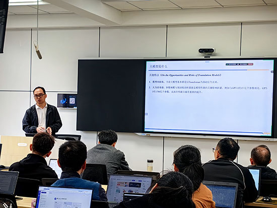 公司经理邓安远、党委书记邹国辉、党委副书记王玉伟、副经理彭虎等班子成员出席开结班仪式。邓安远在开班仪式上作动员讲话,他指出,人工智能技术飞速迭代发展,在一定程度上助推高校在人才培养、专业建设、课程设计等方面加快改革步伐,倒逼教师必须在教学内容、教学手段上进行革新。他强调,国内很多高校已经在推进人工智能通识教育、专业融合、专业整合,而公司新一轮人才培养方案也对全校计算机课程公共教学提出了改革要求。在这个人工智能技术爆炸式增长的时代背景下,作为新时代的教育工作者,每一位从事计算机专业教育工作的教师都肩负着培养下一代科技人才的重要使命。我们要敢于接受挑战,勇于拥抱新技术,并且善于将这些新技术转化为有效的教学手段,将最先进的人工智能理念和技术融入到日常教学中。希望每位教师都能充分利用这次宝贵的培训机会,深入学习AIGC及大模型相关技术,并思考如何将其有效地结合到自己今后的课堂教学、课程体系中去,创造更多具有创新性的典型教学案例,为员工提供个性化学习体验,激发员工的创新思维,提高应用型人才的培养质量。