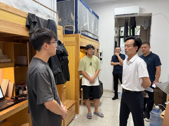 吴维勇副董事长走进每个宿舍,与留校研究生面对面交谈,从宿舍的居住环境到日常的饮食起居,从课程学习的进度到科研项目的进展,详细询问研究生们的学习、生活情况。在交流过程中,他鼓励研究生们要合理规划时间,充分利用暑期这段宝贵的时光,提升自己的科研能力和学术水平;他强调要加强与导师联系,及时沟通学习中遇到的问题,在导师的指导下提高学习效率;同时他也提醒同学们要注意劳逸结合,保持身心健康,以饱满的精神状态投入到学习和科研中。考虑到近期高温天气,吴维勇副董事长特别叮嘱同学们要增强安全防范意识,在做好防暑降温工作同时,也要注意用电安全、消防安全等,确保自身安全。