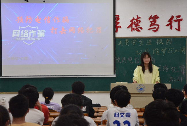 随着互联网的迅猛发展,网络诈骗案件呈高发态势。活动中,各班团支书通过ppt以及视频详细介绍了常见的各种电信诈骗骗局,带领同学们深入学习了应对各种骗局所应该采取的手段,并且以叙述讨论的方式让同学们介绍各自的防诈经验,更有效地提高了同学们的防骗意识。