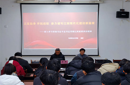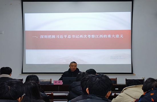 为进一步推动学习贯彻习近平总书记考察江西讲话精神走深走实,12月15日下午,bevictor伟德在文友楼424召开深入学习贯彻习近平总书记考察江西重要讲话精神专题辅导报告会。校马克思主义宣讲团成员黄群教授作专题辅导报告,计算机公司党委书记袁宜如同志主持。