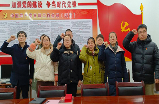 重温一次誓词,重忆一次初心。党员们在支部书记的带领下,一起高举右拳,再次庄严宣誓,字字铿锵有力,一字一句,神圣而豪迈,铮铮誓言,体现了党员同志们对中国共产党的无限忠诚,坚定了入党使命、奋斗初心。