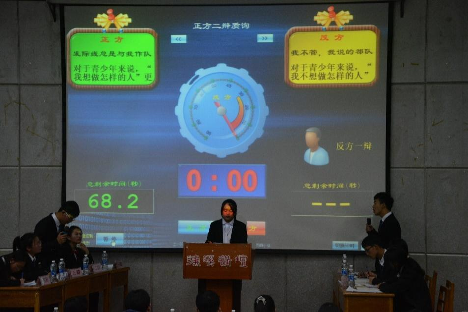 此次活动辩题是“对于青少年来说,我想成为怎样的人更重要还是我不想成为怎样的人更重要”。活动一开始,双方便开始各自的立论环节,辩手们集中精神听对方的稿子并进行质询攻击。双方四辩对辩环节很是精彩,两方辩手对辩题都有自己独到的理解。随后是双方三辩分别对一、二、四辩进行盘问以及质询小结。辩论赛如火如荼的开展着,最后A2142班以8:7的比分胜出。