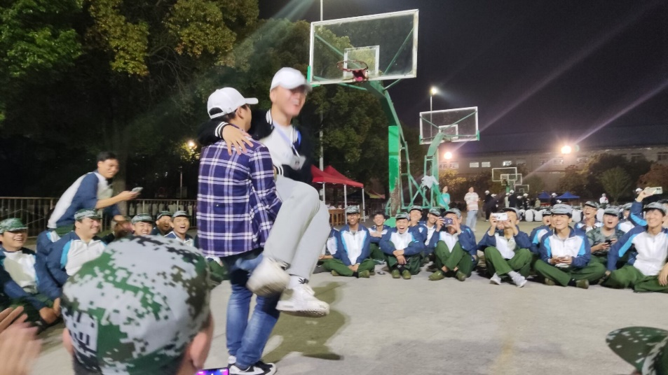 晚上大家在训练场地盘腿而坐,一起放声歌唱,一起玩游戏,一起生活在一个集体里。