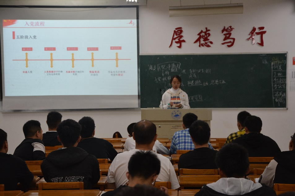 活动中,员工党员代表从相关党史知识、申请加入中国共产党的必要条件、如何书写入党申请书以及基本入党流程四个方面进行宣讲,使同学们对入党流程有了更多的了解,同时呼吁广大青年学子积极加入党组织,并就入党后该如何做的问题上提出了宝贵建议,最后活动在青年学子们雷动的掌声下结束。