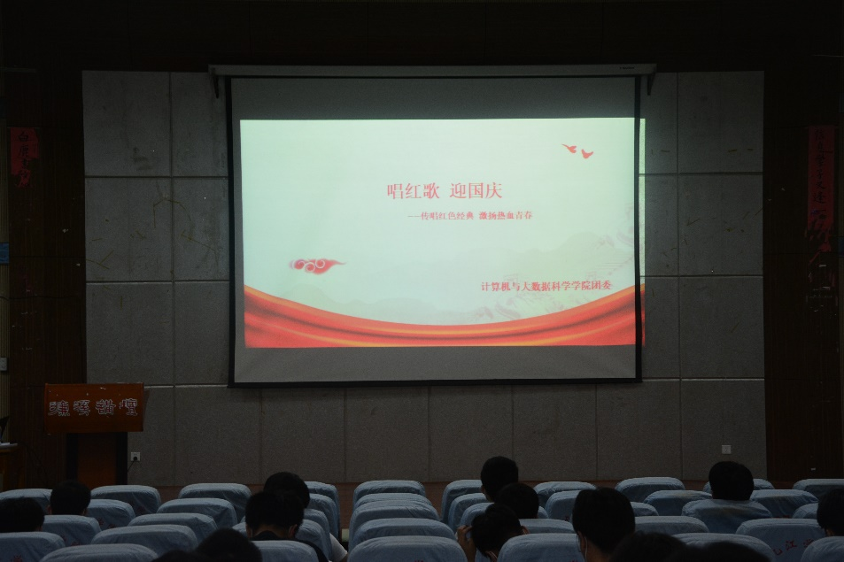 为迎接伟大祖国72岁生日,激发同学们的爱国热情,9月29日晚上7点,计算机公司在文友楼报告厅开展“唱红歌 迎国庆”主题活动,通过歌声为祖国母亲献上最诚挚的祝福。