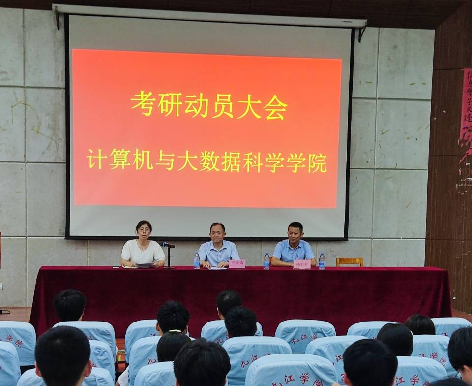 为激发同学们的考研热情,加深对考研形势的认识,加强公司学风建设,6月16日晚七点,计算机公司在文友楼一楼报告厅举办了考研动员大会。本次大会邀请了南昌航空大学软件公司教师杨丰玉,计算机公司经理邓安远、员工科副科长刘欣、教师代表徐利亚、18级全体班主任、辅导员及有考研意向的同学参加本次大会,会议由刘欣主持。