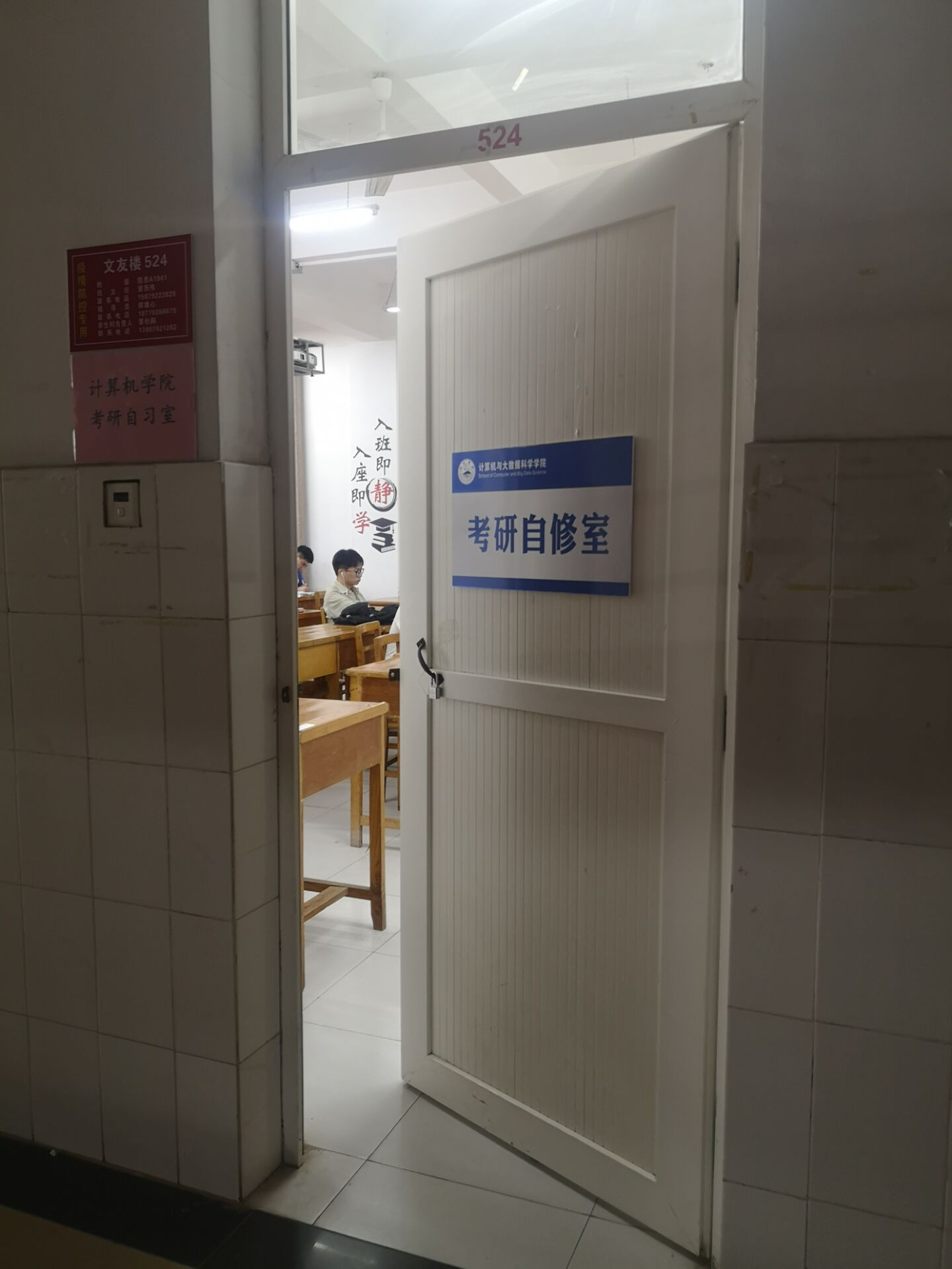 为进一步提高员工的考研热情,营造良好的考研氛围,促进优良学风的建设,在公司领导、教务科、员工科等部门的共同努力下,计算机公司在文友楼524教室设置考研自修室。目前考研自修室已开放使用,为提供更加舒适的学习环境,公司在教室安装了空调,墙壁上张贴着鼓励的名言警句,安排入党积极分子开展打扫教室卫生志愿服务等系列升级活动,相信在大家的共同努力下,计算机公司员工考研定会再创佳绩。