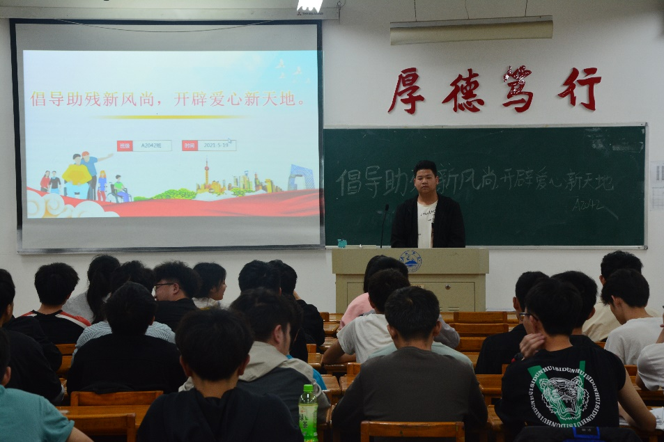 为了宣传我国第三十一个全国助残日,进一步弘扬中华民族扶弱助残的传统美德。5月19日晚,计算机公司在文友楼各班开展“倡导助残新风尚,开辟爱心新天地”主题团日活动,此次活动由各班团支书主持,全体大一员工参加。