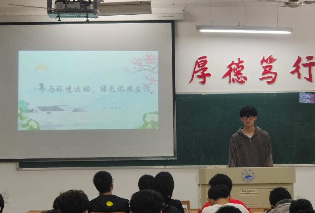 世界地球日来临之际,为了增强同学们对保护环境的意识,计算机公司各班级在文友楼开展“参与环境活动,绿色低碳生活”主题团日活动。活动由各班团支书主持,全体大一同学参加。