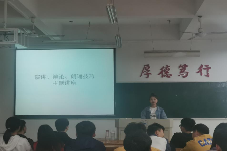 随后,马晓燕为骨干班的同学们讲解了关于演讲,辩论,朗诵的技巧。首先从最基本的动作要领说起,站立时要打开肩胛骨,双脚与肩基本同宽,气沉丹田。然后在从语言方面进行培训,对骨干班同学们的发音、吐字作了基本要求:发音要准,吐字清晰,声音有力。并邀请了几位同学上台亲自给他们指导,为同学们作示范。
