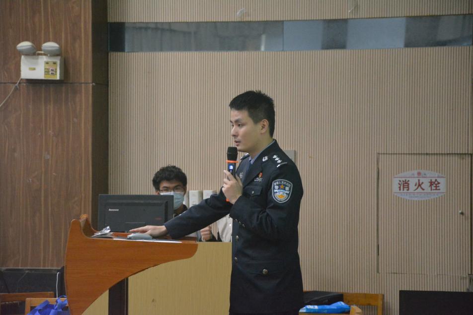 首先由民警马维为同学们带来有关防范电信网络诈骗知识的宣讲。他从互联网的应用与发展出发,为同学们普及网络犯罪和网络警察的职能与作用。并提出老员工上网要做到“三个远离”:远离营业性网吧,远离垃圾网站,远离网络骗子。他结合典型案例来讲授网络知识,宣传网络安全法规,倡导师生“绿色上网、文明上网、安全上网”。