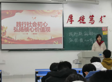 活动中,各班团支书先向同学们介绍了践行社会初心和弘扬核心价值观的价值意义,让同学们对核心价值观有了更深刻的理解。紧接着讲述了社会主义核心价值观的时代背景,激励着同学们加入其中。最后,团支书呼吁大家一起践行社会初心,弘扬核心价值观。得到了同学们的积极响应。