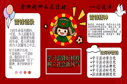 为弘扬雷锋精神,引导同学们树立牢固的热爱党、热爱祖国、热爱人民的坚定信念,计算机公司团委宣传部于2月28日举办了“向雷锋学习,树社会新风”电子板报征集活动。