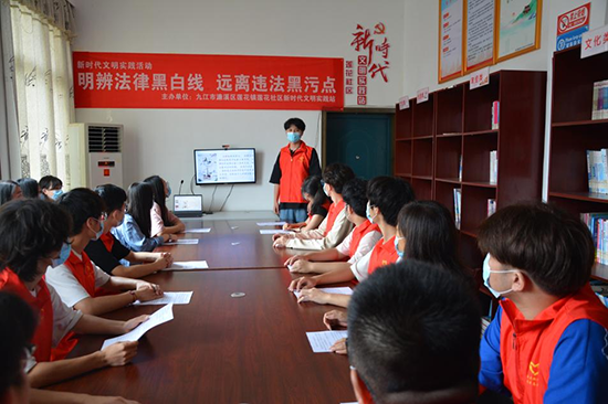 法律是治国之重器,良法是善治之前提。为了深入贯彻落实国家强化法治教育的重要方针,引导居民树立正确的法治观念,强化居民法律意识,加快构建和谐、平安、文明社区。6月25日上午,计算机公司“踏梦前行·e码当先”社会实践服务队和九江市濂溪区莲花镇莲花社区新时代文明实践站共同开展法律宣传活动。