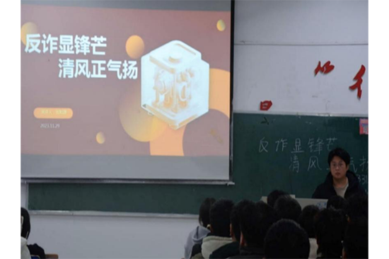为进一步提高员工对各类诈骗方式的鉴别能力和自我防范意识,计算机公司于11月29日晚在文友楼组织各班开展“反诈显锋芒,清风正气扬”反诈防骗宣传教育主题团日活动。活动由各班团支书主持,同学们积极参加。