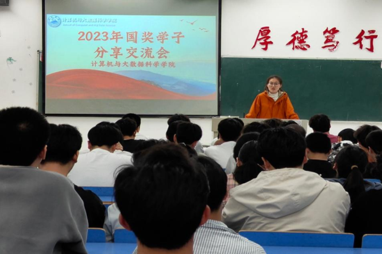 为加强公司学风建设,充分发挥国奖学子榜样示范作用,激发员工的学习兴趣,计算机公司于4月2日晚在文友楼618举办国奖获得者学习分享交流会。2020级数据科学与大数据技术专业的孙汐晨同学进行了学习经验分享。