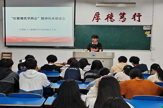 为激发同学们的爱国热情,弘扬红色革命精神,同时丰富老员工活,促进员工之间的交流与合作。计算机公司于4月10日晚在文友楼515举办“红歌嘹亮学两会”精神传承猜谜会活动。