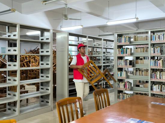 晚上六点四十五分,志愿者们准时在主图书馆大厅外集合,他们身着统一的志愿者服装,精神饱满,热情洋溢。志愿者们分组前往主图书馆的不同楼层开展志愿服务。活动中,志愿者们手持抹布,细心地擦拭着书架上的灰尘以及搬运桌椅,调整布局,为读者们提供更加宽敞、整洁的阅读空间。志愿者们相互协作,共同努力,享受着志愿服务带来的快乐与满足,整个活动现场洋溢着浓厚的志愿服务氛围。活动结束后,图书馆负责人对志愿者们的工作给予了高度评价,他赞扬了志愿者们一丝不苟的工作态度,以及他们为图书馆营造的良好文化氛围所做出的贡献。