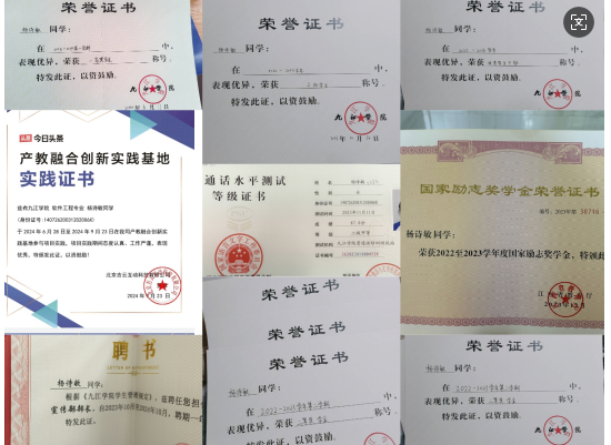 出身于普通家庭,杨诗敏面对生活的不易,选择以“知难而上,勤奋不息”为座右铭。在学业上,她刻苦钻研,勤奋好学,成绩优异,多次获得校级奖学金及“三好员工”称号。她不仅在专业课程上表现出色,还顺利通过了英语四级、计算机二级等考试。在科研竞赛中,她积极参与,勇于创新,“挑战杯”中国老员工创业计划竞赛优秀奖等奖项等。