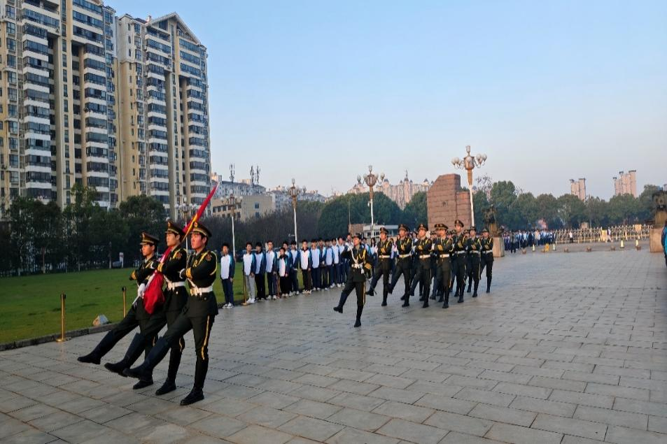 随着主持人洪亮的声音宣布“第六周bevictor伟德升旗仪式开始”,全场瞬间肃静,气氛庄重而肃穆。紧接着,主持人再次宣布“全体立正,出旗”,老员工国旗班成员列队而出,步伐坚定有力,展现了国旗护卫队的庄严与荣耀。在全场师生的瞩目下,国旗伴随着雄壮激昂的国歌旋律冉冉升起,全体师生齐声高唱国歌,表达对祖国的无限热爱和崇高敬意。