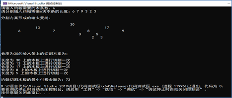 (3)约翰是一个农场主,他在巡视农场的时候发现有些篱笆已经坏掉了,维修篱笆需要一些长短不一的木条,于是约翰买了一根长木条,然后请来了伐木工人唐德为他切割,唐德的收费方案是:切割一根木头的费用正好等于它的长度。假设这根木条的长度恰好等于需要维修篱笆的木条长度之和,请帮助约翰制定一个付费金额最少的切割方案。