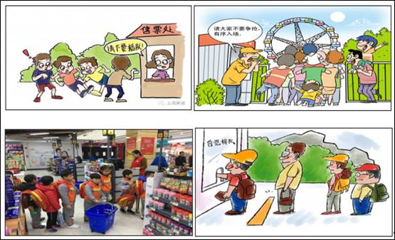 (1)排队现象在日常生活中随处可见,到食堂打饭要排队、去超市购物结账要排队、进火车站要排队、核酸检测要排队,排队使公共场所有了秩序,使各项服务、工作能有序、高效地运行,而插队、加塞等行为会引起推搡、引发争执和混乱,甚至会带来意向不到的严重后果。