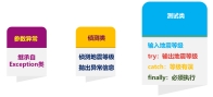 定义三个类: 1.参数异常类 2.侦测类:发现异常时通过throws抛出异常 3.测试类:catch捕捉 |