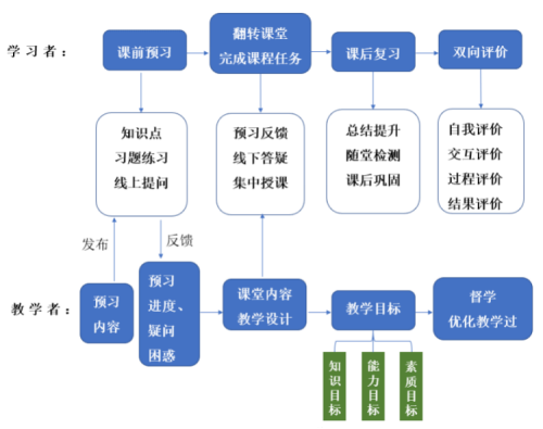 以员工为中心,以激发员工学习自驱力为目的,坚持专业教学和思政教学有机结合,坚持“理论+实践”的教学方法,采用“线上+线下”相结合的混合式教学模式开展课程教学,构建针对整门课程的整体教学设计,即对课程的教学模式、学习模式的交互式设计,如下图所示:
