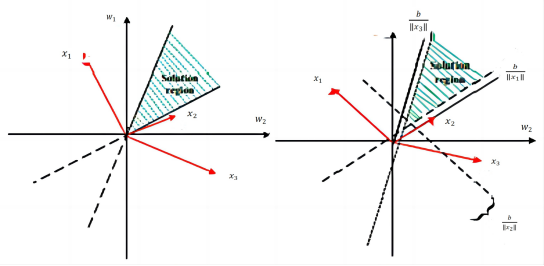 加入约束后,使得解域范围收缩。沿着每个样本向量